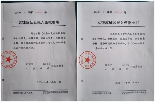 附件七:入伍批准书示例照片