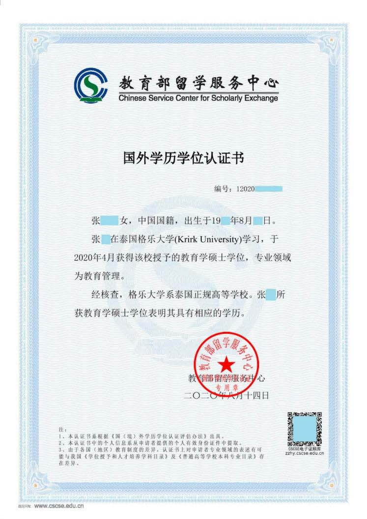 附件六:教育部国外学历学位认证书示例照片